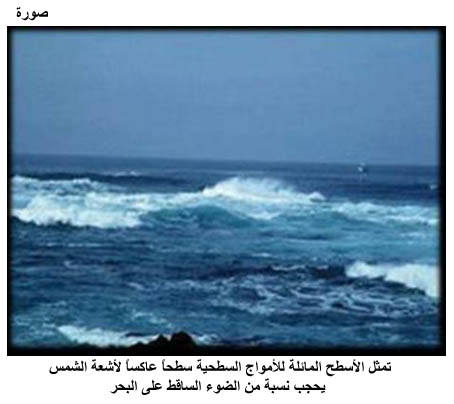 تمثل الأسطح المائلة للأمواج السطحية سطحاً عاكساً لأشعة الشمس يحجب نسبة من الضوء الساقط على البحر
