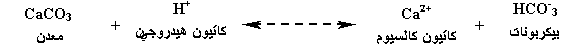 أما الحجر الجيري، المكون، أساساً، من معدن الكالسايت CaCO3، فيتجوى بسرعة، في الأقاليم الرطبة المعتدلة، حيث تنشط عملية التجوية بالكربنة، لتوفر الرطوبة، والتركز العالي لثاني أكسيد الكربون في التربة، الناجم عن توافر المواد العضوية على السطح، وانخفاض درجة الحرارة، التي تزيد من قابليته للذوبان في المحلول المائي، ثم ذوبان معدن الكالسايت، كما في المعادلات الكيماوية التالية: