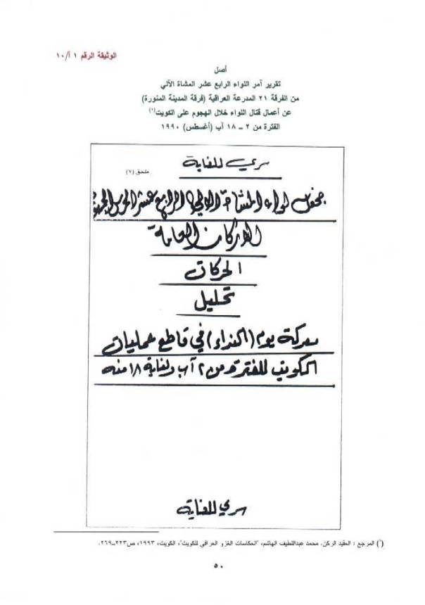 تقرير آمر اللواء الرابع عشر المشاة الآلي