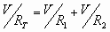 حيث IT يرمز إلى التيار الكلي المار في الدائرة، وRT إلى المقاومة الكلية للدائرة، وV إلى فرق الجهد بين طرفي الدائرة؛ أي أن: