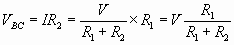 التيارI يمر في المقاومة R1، وهذا يعنى وجود فرق جهد كهربي بين طرفيها، من النقطتين B وC، وبتطبيق قانون أم، يكون فرق الجهد الكهربي بين النقطتين B وC هو: