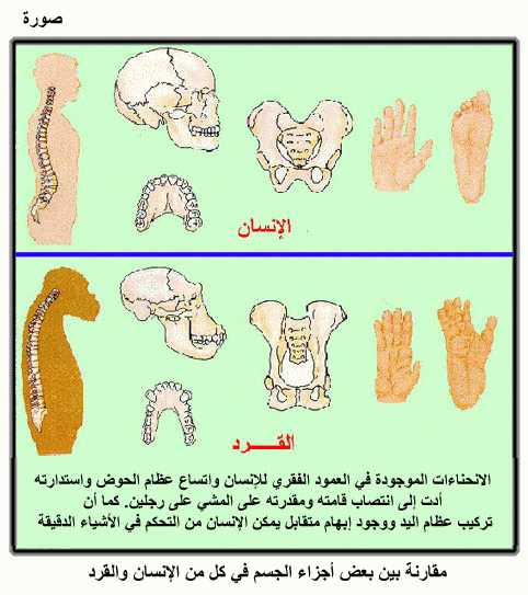 مقارنة بين بعض أجزاء الجسم في كل من الإنسان والقرد