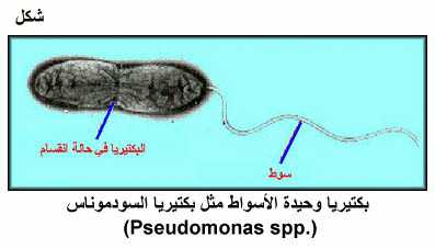 بكتيريا وحيدة الأسواط مثل بكتيريا السودموناس (.Pseudomonas spp)