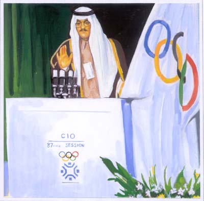 الأمير فيصل بن فهد (رحمه الله)، يؤدي القسم الأولمبي، عند انضمامه إلى اللجنة الأولمبية عام 1983"
