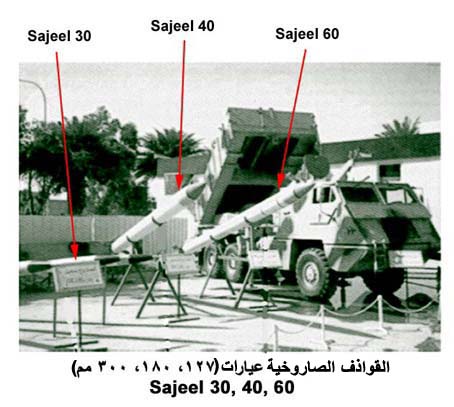 القواذف الصاروخية عيارات 127، 180، 300 مم Sajeel 30, 40, 60