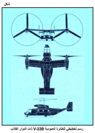 رسم تخطيطي للطائرة العمودية V-22B ذات الدوار القلاب