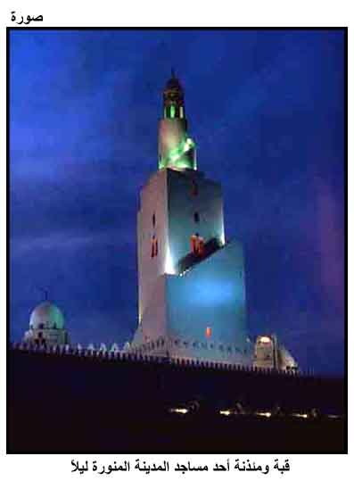 قبة ومئذنة أحد مساجد المدينة المنورة ليلاً