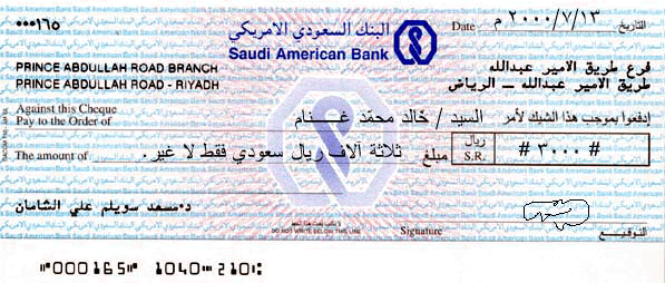 نموذج للشيك