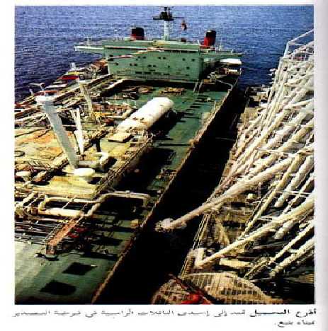 أذرع التحميل تمتد إلى إحدى الناقلات الرأسية في فرضة التصدير بميناء ينبع