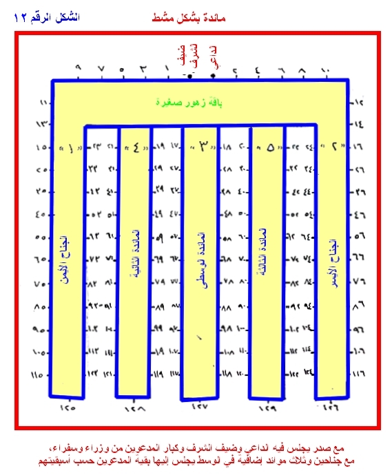 مائدة بشكل مشط مع جناحين وثلاث موائد إضافية في الوسط