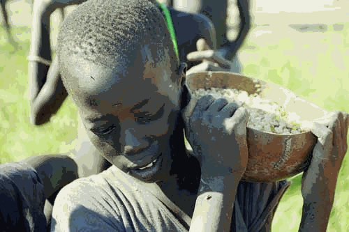 طفل يحمل نصيبه من الغذاء المقدم من "برنامج الغذاء العالمي"