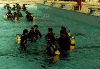 طلبة الكلية البحرية المصرية أثناء تدريب الغطس