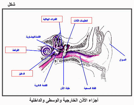 أجزاء الأذن الخارجية والوسطى والداخلية