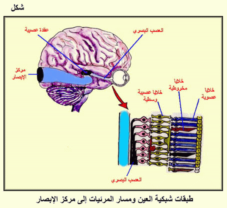 طبقات شبكية العين ومسار المرئيات إلى مركز الإبصار