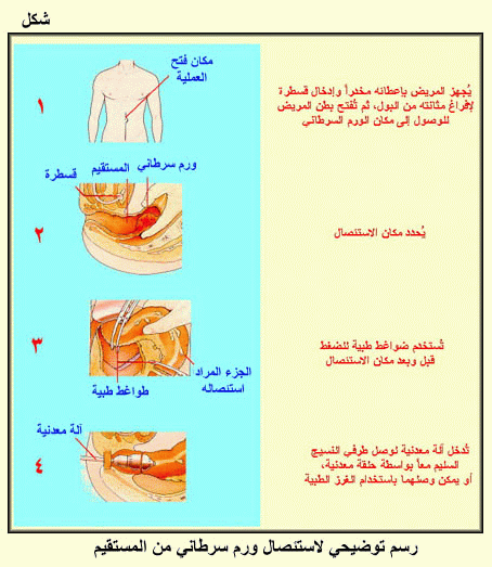 رسم توضيحي لاستئصال ورم سرطاني من المستقيم