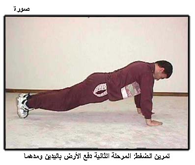 تمرين الضغط المرحلة الثانية دفع الأرض باليدين ومدهما