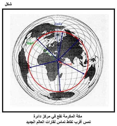 مكة المكرمة تقع في مركز دائرة تمس أقرب نقاط تماس لقارات العالم الجديد