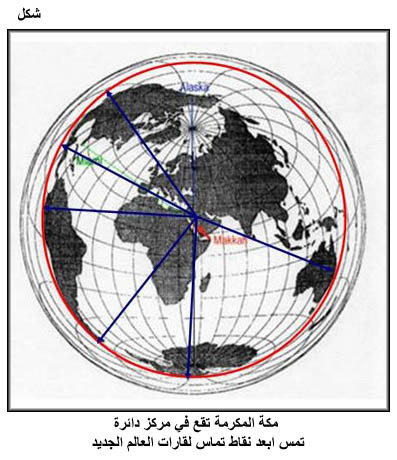مكة المكرمة تقع في مركز دائرة تمس ابعد نقاط تماس لقارات العالم الجديد