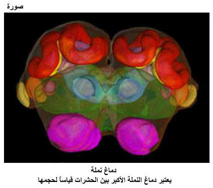 دماغ نملة، يعتبر دماغ النملة الأكبر بين الحشرات قياساً لحجمها