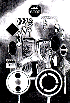 ينبغي على السائق أن يكون على دراية ومعرفة تامة بمدلول العلامات واللوحات والإشارات الضوئية والخطوط الأرضية التي تنظم حركة السير،