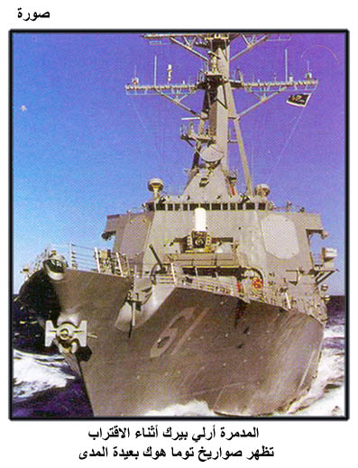 المدمرة أرلي بيرك أثناء الاقتراب، تظهر صواريخ توما هوك بعيدة المدى