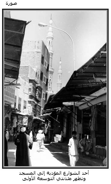 أحد الشوارع المؤدية إلى المسجد وتظهر مئذنتي التوسعة الأولى