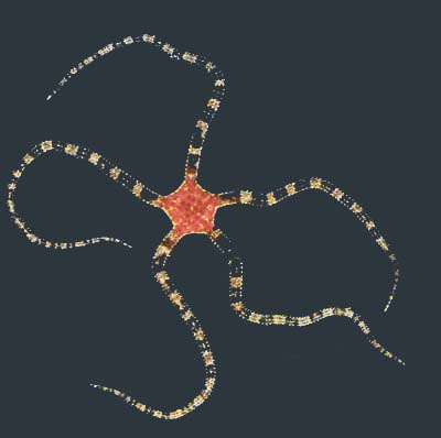 أحد أنواع الجلد شوكيات واسمه العلمي افيوديرما ابرسوم Ophioderma appressum يكثر تحت الصخور