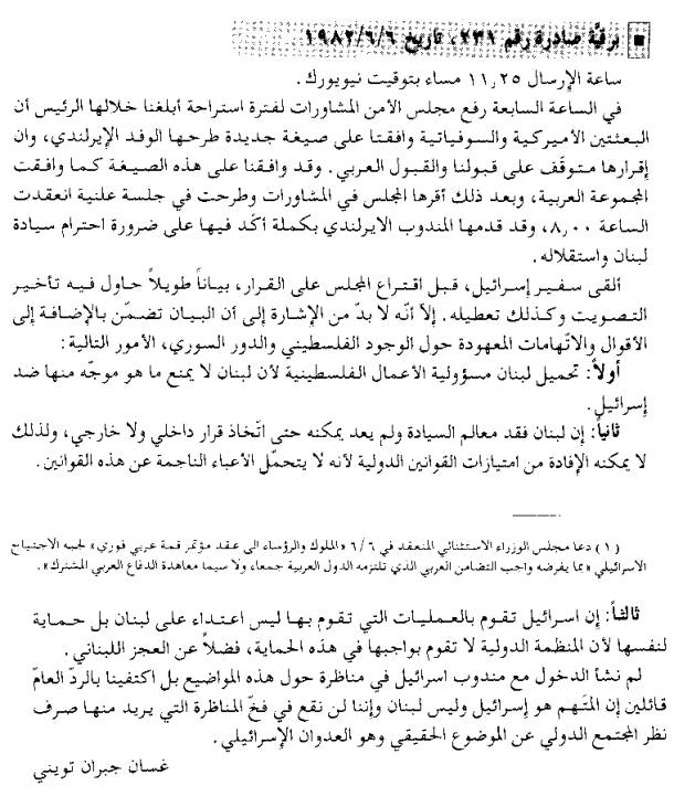 من المندوب اللبناني الدائم بالأمم المتحدة إلى وزير الخارجية اللبناني