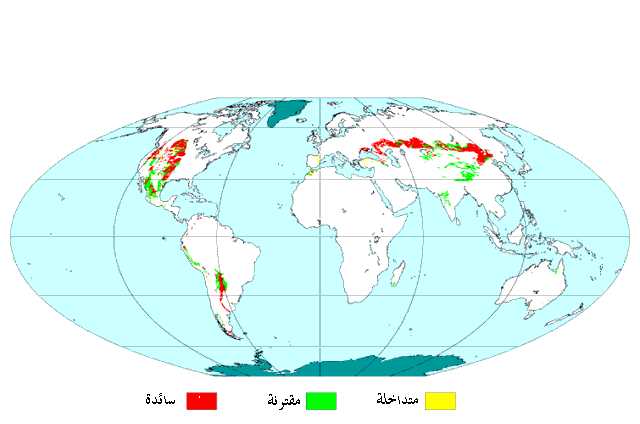 التوزيع الجغرافي لوحدة الترب الكستنائية Kastanozems (منظمة الأغذية والزراعة FAO)