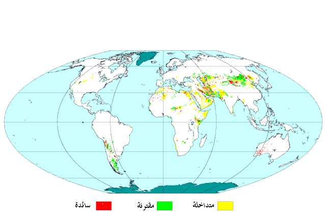 التوزيع الجغرافي لوحدة الترب الملحية Solonchaks (منظمة الأغذية والزراعة FAO)