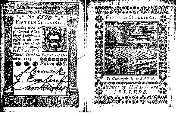 اقدم صورة لعملة ورقية أصدرتها الحكومة البنسلفانية أصدرت في الخامس من أكتوبر عام (1773)