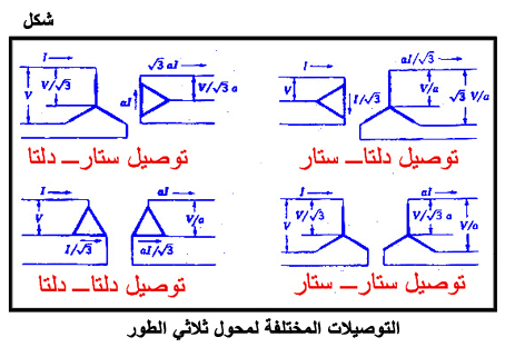 التوصيلات المختلفة لمحول ثلاثي الطور