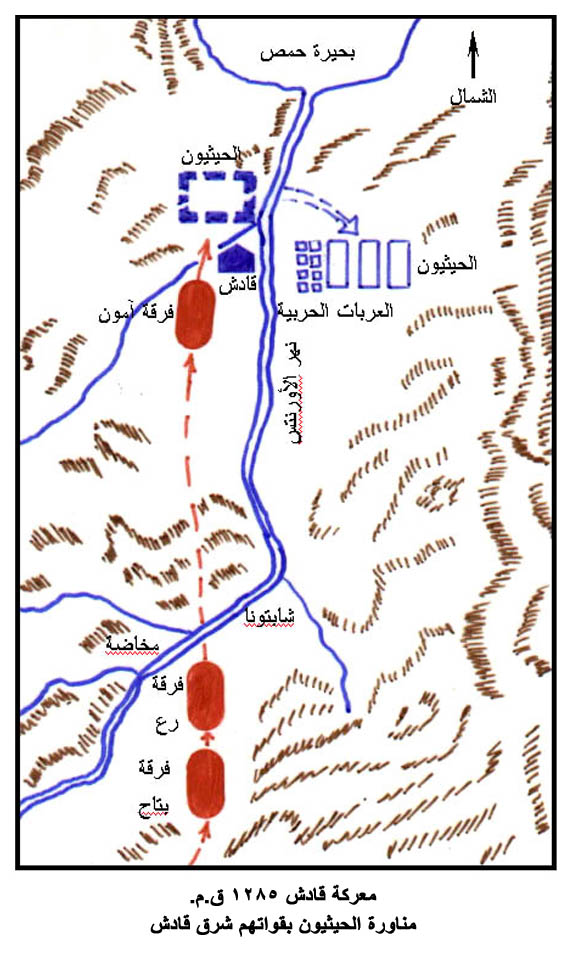 معركة قادش 1285 ق.م. مناورة الحيثيون بقواتهم شرق قادش