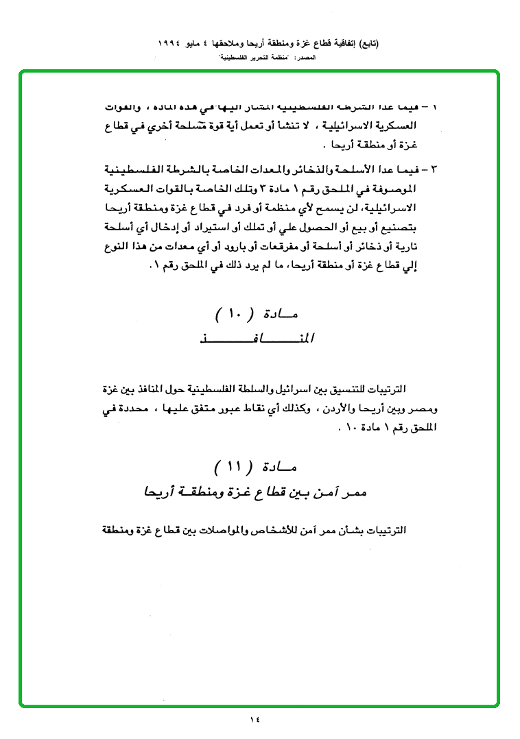 | Home Page / الوثائق / اتفاقيات السلام العربية - الإسرائيلية / فلسطين - إسرائيل / images | |||
